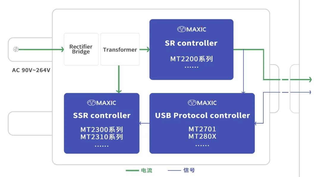 美芯晟推出的高集成、高效率、從原邊控制器、副邊同步整流到快充協(xié)議芯片的20W~65W的整體解決方案,可滿足終端用戶對(duì)高性能、高性價(jià)比等方面的需求。