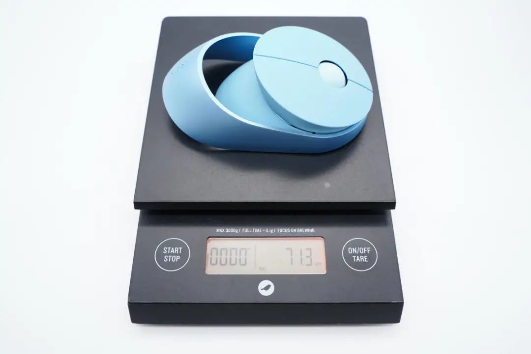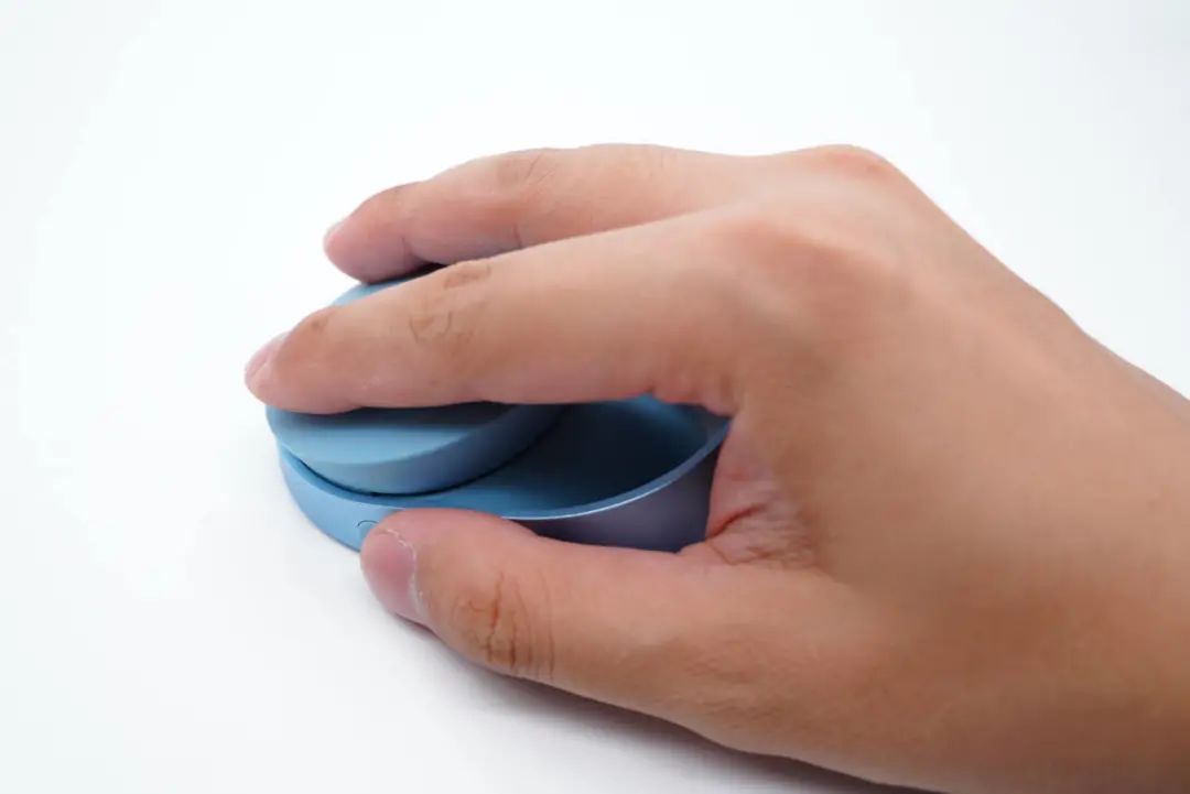 雷柏Ralemo Air 1無線鼠標(biāo)整體小巧,機(jī)身中空造型設(shè)計(jì)新穎。頂部圓形塑料殼分半即為左右鍵,表面磨砂處理,球形滾輪位于中心稍微偏下位置。