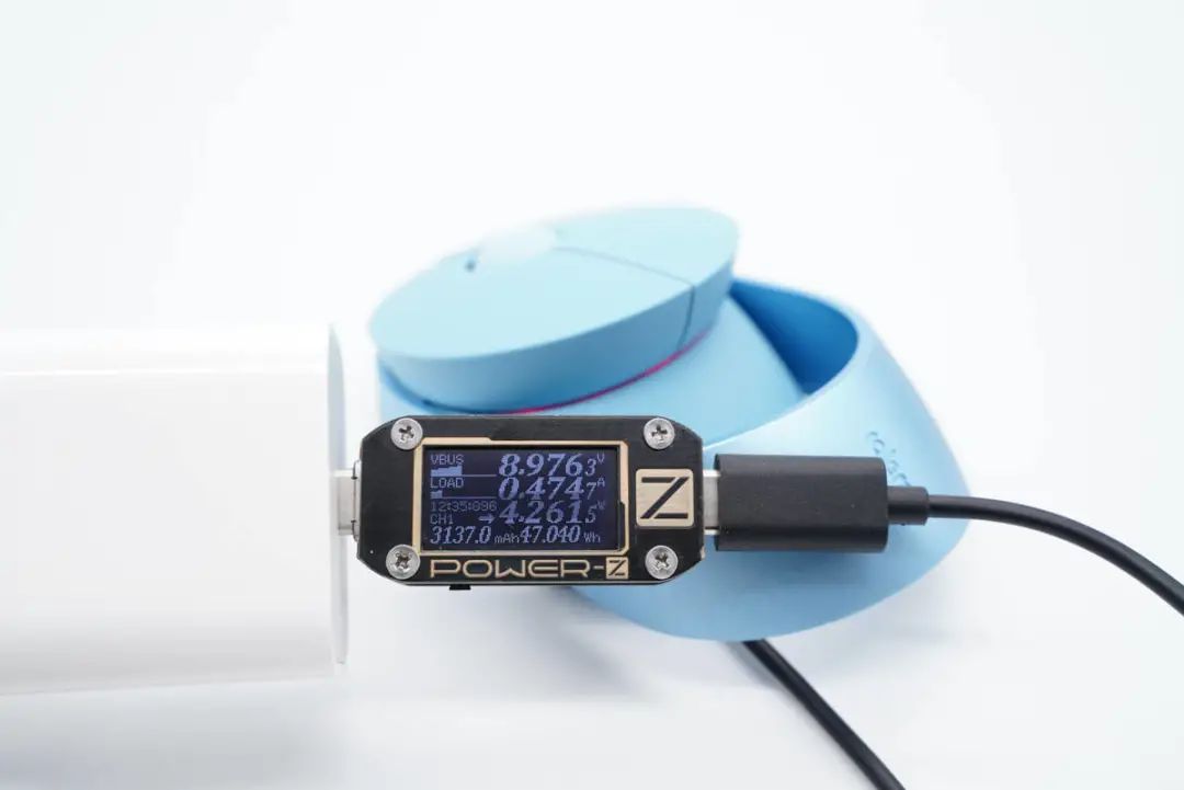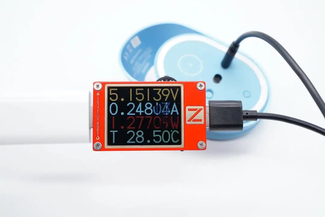 使用ChargerLAB POWER-Z KM001C可以測(cè)得此時(shí)無線充電輸入功率為8.98V 0.47A 4.26W。