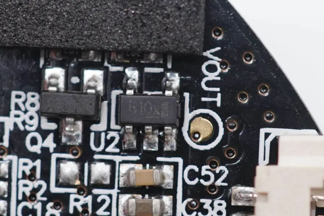 充電頭網(wǎng)通過拆解發(fā)現(xiàn),鼠標(biāo)內(nèi)部設(shè)有充電和控制兩塊PCB板,PCB板之間以及和電芯均采用導(dǎo)線插拔式連接,組裝方便。充電小板上設(shè)有USB-C和無線充電接收線圈兩者充電方式,其中無線充電路采用美芯晟MT5705無線充電接收芯片,該芯片不僅轉(zhuǎn)換效果高,而且擁有完善的保護(hù)機(jī)制,符合最新WPC Qi規(guī)范,非常適合TWS耳機(jī)充電倉等各類小功率智能設(shè)備。