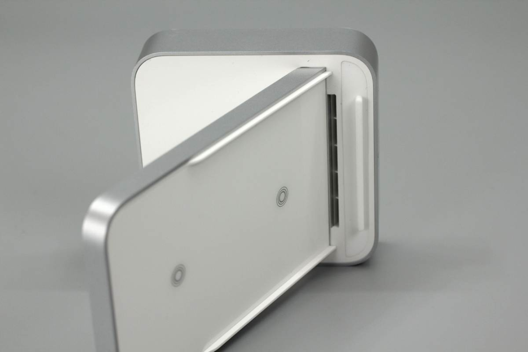魅族這款無(wú)線充由底座和手機(jī)支撐板兩部分組成,支撐板正面是ABS材質(zhì)鋼化玻璃,十分光滑,支撐板和底座側(cè)身均噴砂銀灰色涂料進(jìn)行裝飾。