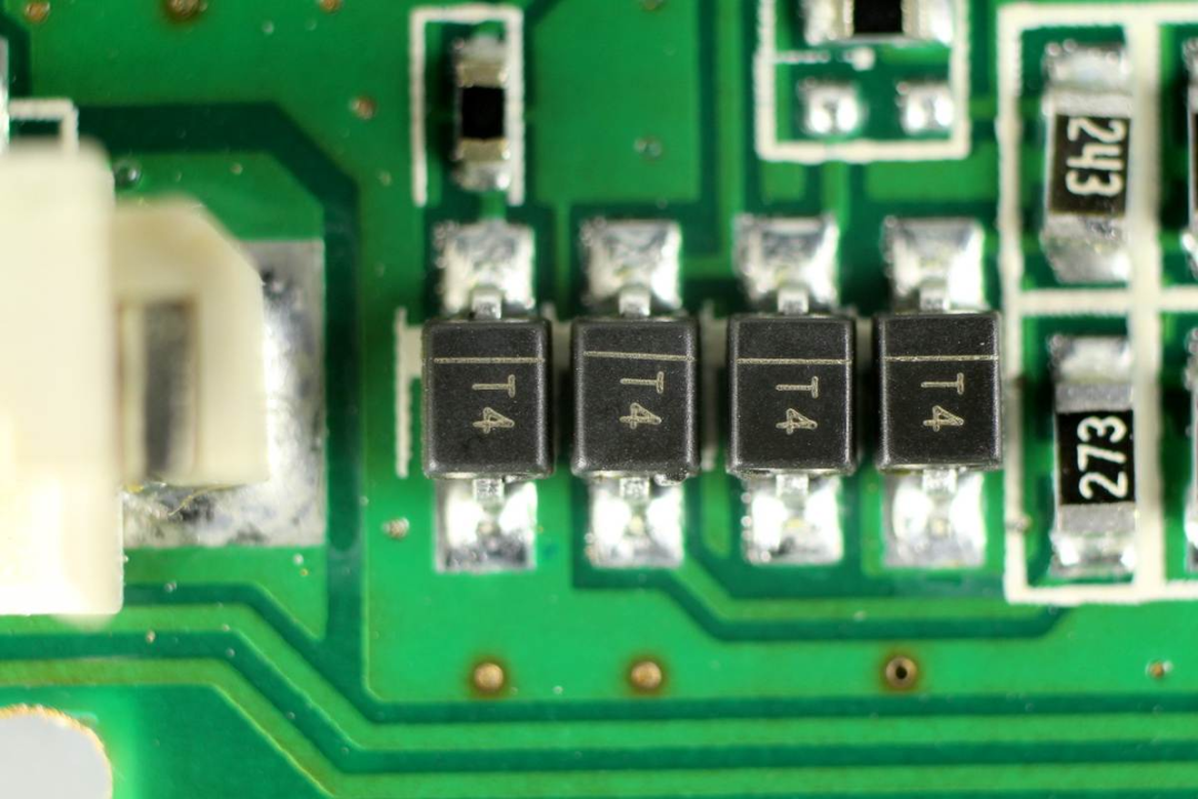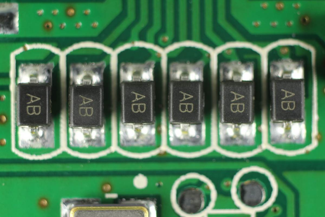 絲印AB的TVS,用于數(shù)據(jù)端口過(guò)壓保護(hù)。
