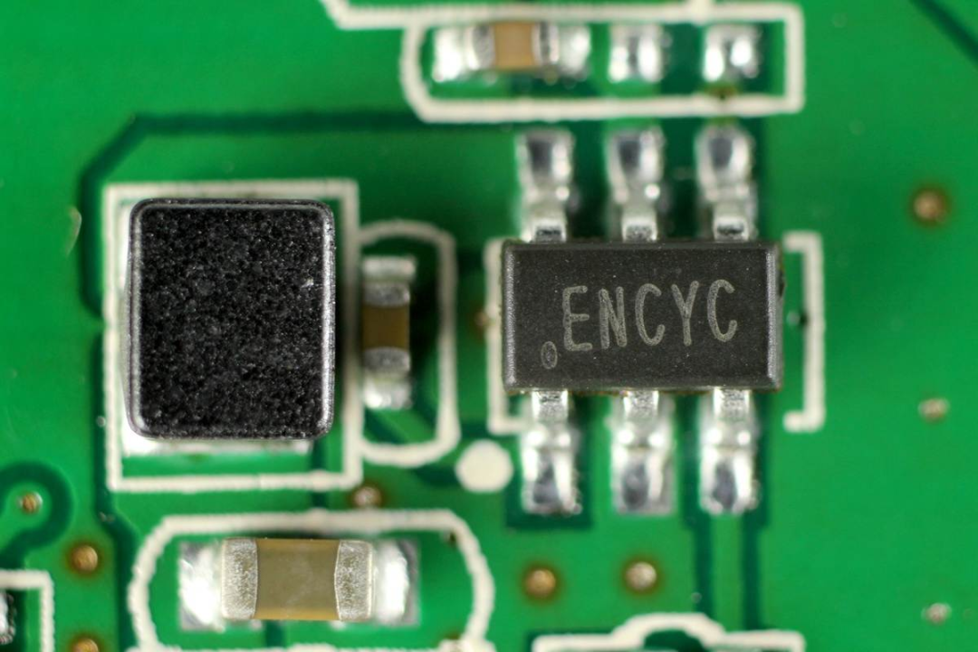 矽力杰 SY8201 同步整流降壓轉(zhuǎn)換器,將輸入降壓為無(wú)線充內(nèi)部元件供電,輸出電流1A,輸入耐壓27V。左邊是對(duì)應(yīng)的降壓電感。