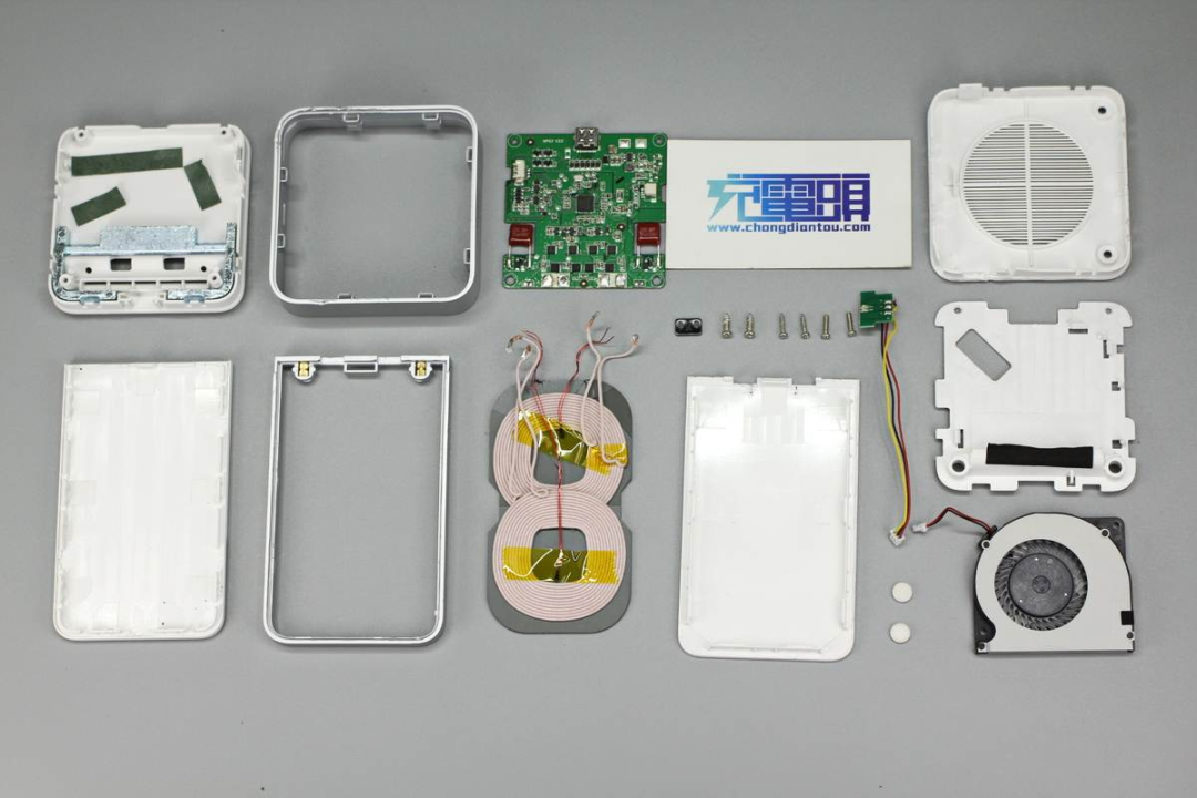 這款無(wú)線充電器內(nèi)置小風(fēng)扇,可在無(wú)線充電過(guò)程中進(jìn)行主動(dòng)散熱。此外立式機(jī)身設(shè)計(jì)讓其減少了桌面占地空間并可以作為手機(jī)支架使用,40W無(wú)線充電功率也讓使用體驗(yàn)更上一層樓,很快就能讓手機(jī)滿血復(fù)活。下面充電頭網(wǎng)就對(duì)這款產(chǎn)品進(jìn)行詳細(xì)拆解,看看內(nèi)部設(shè)計(jì)用料如何。