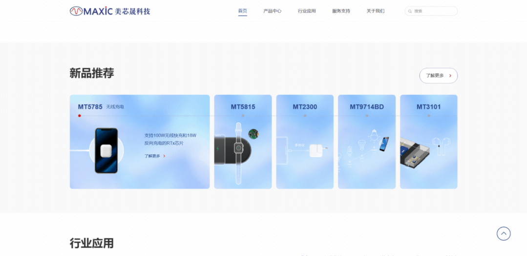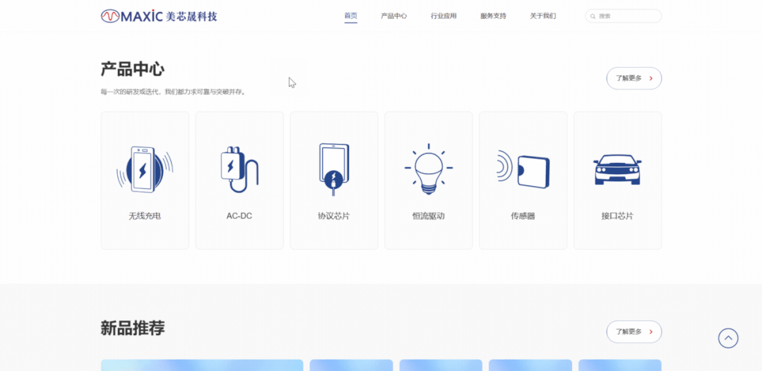 本次升級(jí),我們?cè)谑醉?yè)保留了“新品推薦”版塊。作為用戶了解美芯晟最新產(chǎn)品的窗口,我們將5個(gè)推薦位保留在了一屏展示,主要新品一目了然,點(diǎn)擊即可一鍵查看詳情。輕交互設(shè)計(jì)讓用戶能快速了解產(chǎn)品信息的同時(shí)也能獲得互動(dòng)感。