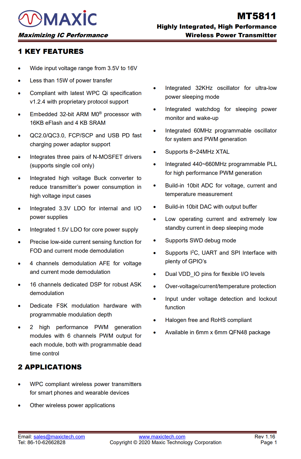 美芯晟MT5811采用QFN6*6-48封裝,功能全面集成度高。