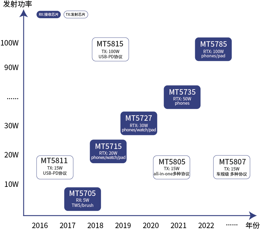 美芯晟最新推出MT5785,是一款基于磁感應(yīng)的SoC高集成無線充電接收芯片,集成了無線充電接收功能所需的一切,正向充電功率高達(dá)100W,同時具有Tx發(fā)射功能,反向充電功率18W。該芯片具有高功率、高性能、高集成度等特點(diǎn),在國內(nèi)外均屬于高端芯片,已在榮耀Magic 4 Pro/至臻系列等最新推出的旗艦手機(jī)上成功實(shí)現(xiàn)量產(chǎn)。